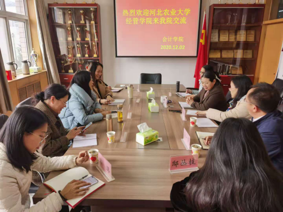 12月2日下午,河北农业大学经济管理公司财会系主任郭丽华教授、支部书记张玲教授等一行五人来到乐天使进行了交流,会议由副经理杨国莉主持。