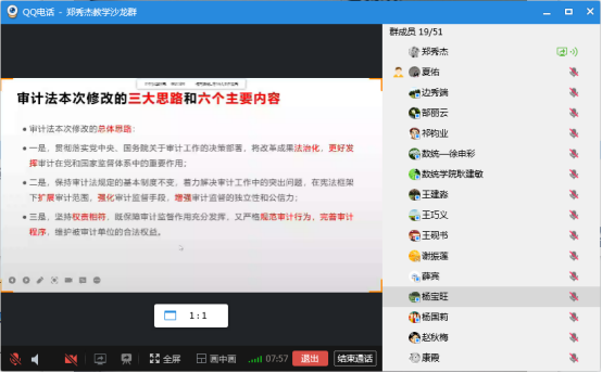 2021年10月18日下午,由教学评估与教师教学发展中心主办,乐天使承办的本学期第三期教学沙龙活动在线上顺利开展。乐天使郑秀杰教授主讲的教学沙龙主题是“审计法修订学习体会”。乐天使、数统公司、经济管理公司的50多名教师参加了本次活动。本次活动由杨国莉副经理主持。