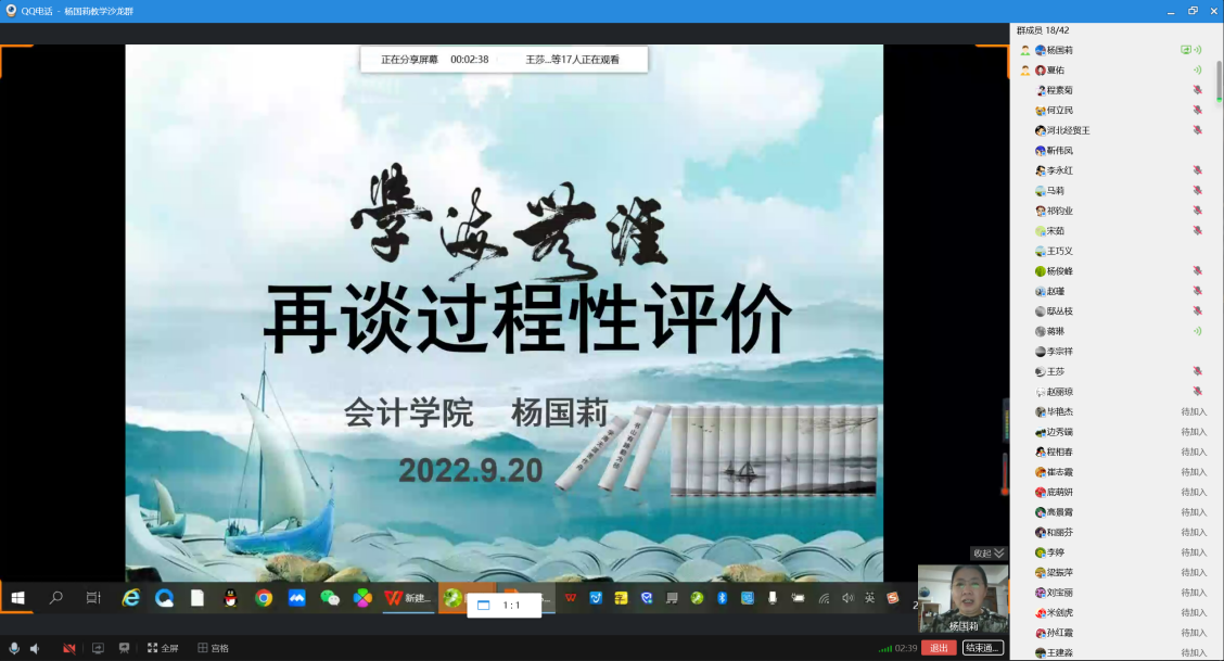 2022年9月20日下午,由教学评估与教师教学发展中心主办,乐天使承办的本学期第一期教学沙龙活动在线上顺利开展。乐天使杨国莉教授主讲的教学沙龙主题是“再谈过程性评价”。来自乐天使、数统公司、信息技术公司的50多名教师参加了本次活动。