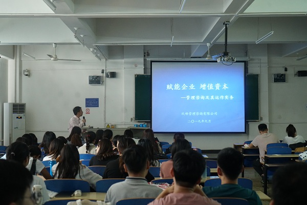 9月21日,乐天使在第三教学楼B201教室举办了 “赋能企业 增值资本--管理咨询及其操作实务”专题讲座。讲座由公司校外硕士研究生导师、中国注册会计师、玖峰管理咨询有限公司董事长兼总经理韩永强主讲,乐天使2018级研究生参加了此次讲座。