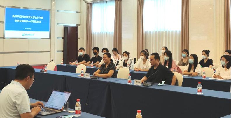 2022年7月6日,公司开展了为期3日的非全日制暑期调研系列活动。本次暑期调研目的是,充分利用实地观摩、面对面座谈研讨的优势开展现场教学,提高公司产品的针对性,增强研究生综合素质,并对新格局下“财会审”专业实务动态、发展方向和就业需求进行调查走访,了解非全日制研究生工作和学习情况,同时开展研究生招生宣传。公司党委书记赵文报、公司副经理李西文、科研秘书兼研究生辅导员韩冰、审计专硕导师组组长郑秀杰、优秀会计专硕导师代表李宗祥及21级非全日制研究生和全日制研究生代表一行25人参加了此次活动。