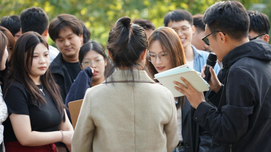 比赛如火如荼地进行着,同学们挥洒而下的汗水与撞入满怀的阳光交织成初秋的唯美画卷。在头晕目眩跑比赛中同学们你追我赶、胸有成竹,展现出蓬勃的朝气与活力;在传声筒比赛中接力的同学抓耳挠腮,在“变了味”关键词中哭笑不得;在知识竞赛里遨游天文地理、历史文学的海洋,为团队赢取胜利积分争分夺秒;在一二三木头人比赛里时而肃穆远望,时而大步流星冲刺终点。