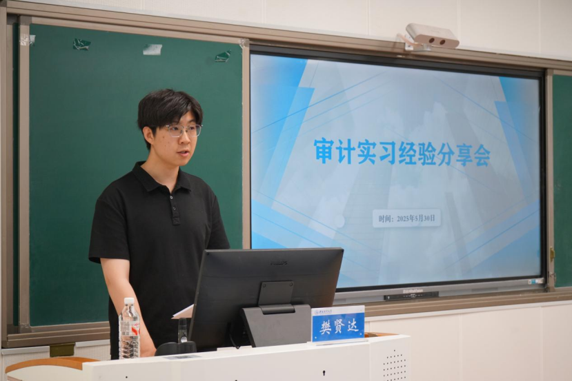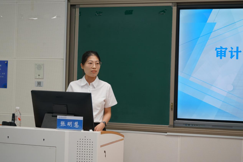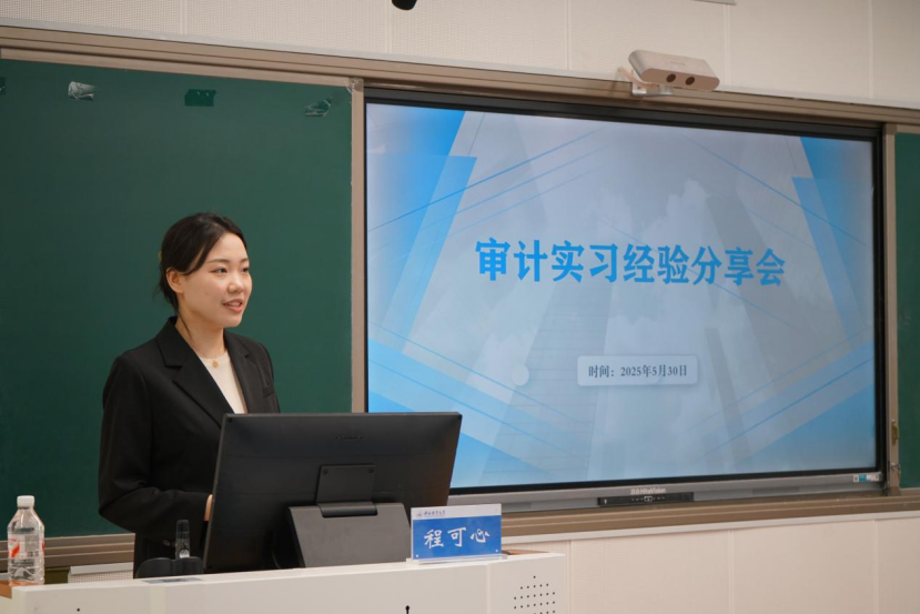 程可心结合在审计处的实习经历,围绕高校经济责任审计展开分享。程可心详细介绍了前期准备、现场审计和底稿编制三个关键阶段的审计工作流程:前期需全面研读政策文件、梳理被审计单位内部控制制度;现场审计重点聚焦财务收支合规性、固定资产管理有效性和经济决策科学性三大板块;底稿编制环节需精准定性问题,确保事实清楚、依据充分。
