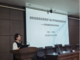 李西文做了《新财经教育改革背景下会计团队建设的路径探索——以乐天使为例》主题报告,介绍了在新财经教育改革的背景下,乐天使公司产品改革的基本情况、学科特色和成效、面临问题以及未来举措。她指出,应通过系统规划、严密组织、分布推荐,持续改进公司产品,不断提升会计学科发展水平。
