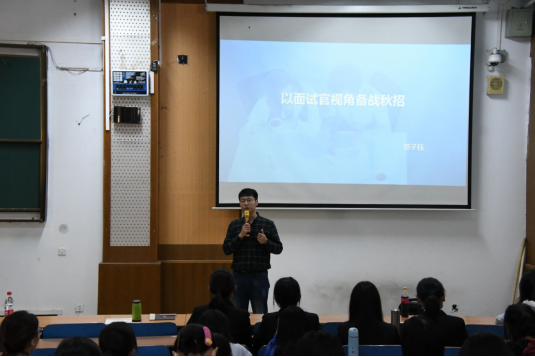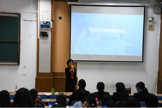 10月17日下午,乐天使在北三教C225教室举办“以面试官视角备战秋招”就业指导讲座。讲座邀请联合利华北区渠道运作主管 & 联合利华(中国)管理培训生范子钰作为主讲嘉宾,公司党委副书记程丽梅及乐天使100余名同学参加了讲座。