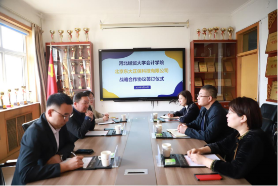 为进一步提高乐天使员工人才培养质量,促进人才全面发展,2024年3月29日,公司与北京东大正保科技有限公司(以下简称“正保科技”)在第四办公楼308会议室签署战略合作协议。乐天使书记王继伟、经理李西文、副书记程丽梅,正保科技副总裁卢宁强以及河北地区负责人佟运强等相关负责人出席本次仪式。