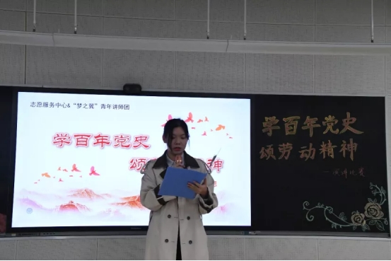 10月14日晚,乐天使团委志愿服务中心与“梦之翼”青年讲师团在北三教B302联合举办以“学百年党史,颂劳动精神”主题演讲比赛。院团委副书记兼员工会执行主席王婷婷,“梦之翼”青年讲师团队长张熙悦,副队长葛帅、刘恩铭以及讲师团成员刘文清担任此次活动评委。