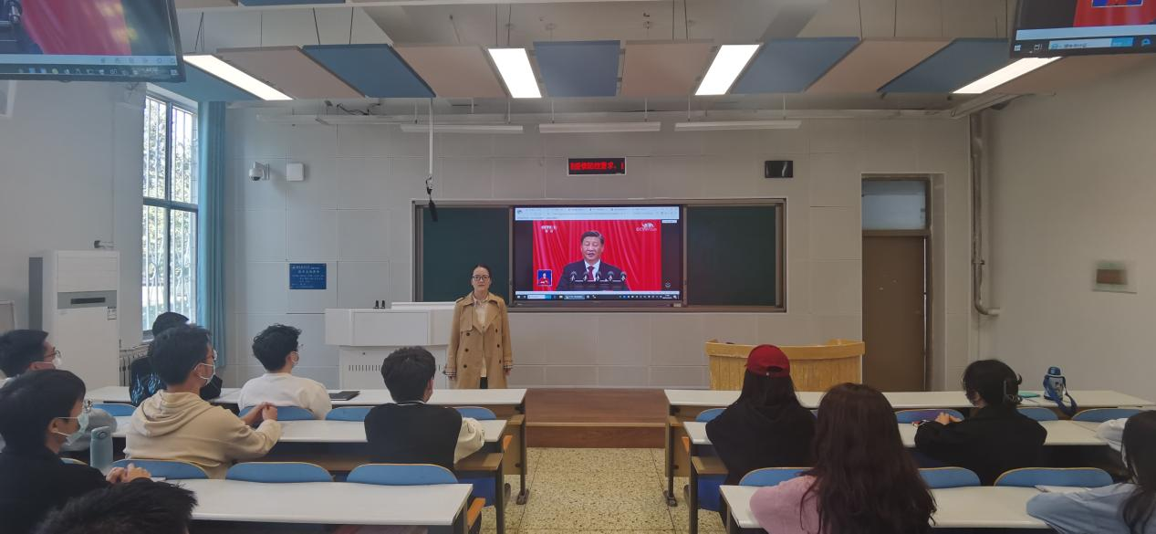 中国共产党第二十次全国代表大会于10月16日上午在人民大会堂隆重召开。为进一步坚定当代青年的理想信念,高举中国特色社会主义伟大旗帜,全面贯彻习近平新时代中国特色社会主义思想,弘扬伟大建党精神。16日上午,在乐天使团委书记周晓玲带领下,团委员工会骨干30余人在北三教A107教室集中观看中国共产党第二十次全国代表大会直播。