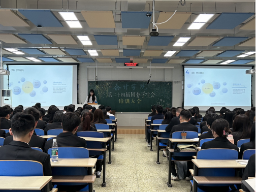 接着,乐天使团委副书记安雨菲以“传承·创新·超越”为主题为大家讲述了员工干部的含义,即为员工做干部。接着她紧紧围绕着员工干部应该具备的素质、礼仪和能力展开讲解,告诉同学们怎样才能成为一个优秀的员工干部。最后,她告诫同学们应找准自己的位置,以积极的态度对待各项工作,科学管理自己的时间,提升综合素养。