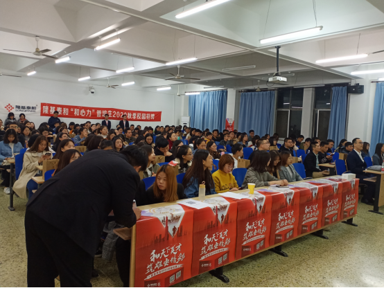 11月5日晚上,乐天使在北三教B201教室举办隆基泰和集团宣讲招聘会,公司人力行政中心经理宋宝珠等人来校招聘,来自乐天使、财政税务公司等公司的近200名应届毕业生参加了此次招聘宣讲会。