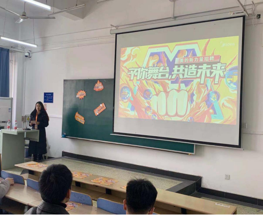 宣讲会开始后,李盼盼为现场的同学播放了美的集团的宣传片和PPT,让大家对美的集团有了更深入的了解,并介绍了美的集团的公司背景,人才培养,员工福利及薪资问题,校招安排等同学们关心的问题。11月26日上午美的集团在公司第四办公楼乐天使会议室组织了相关同学的面试。本次招聘会效果良好。