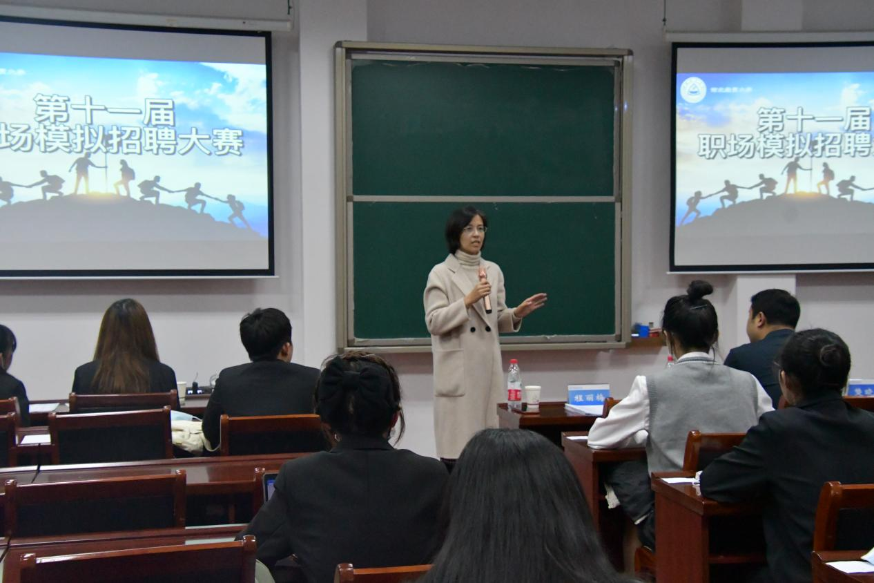 11月6日下午2点,fun88公司第十一届职场模拟招聘大赛复赛在二教103成功举行,复赛由公司党委副书记程丽梅、工商管理公司党委副书记范伟、就业指导中心楚晓梅担任评委。30名入围选手参加了复赛。