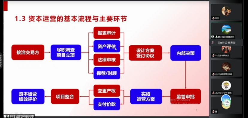 最后,韩永强董事长分享了一款由其公司开发的资本运营工具“管资本”App,阐述了资本运营实操过程中存在的风险和制约风险的主要措施。韩永强董事长字字珠玑,在字里行间中,我们能够充分地体会到经营管理、风险管控和战略合作等企业根基要素的重要性,将实际案例带入自身所学,实现了理论知识与实践学习的统一。