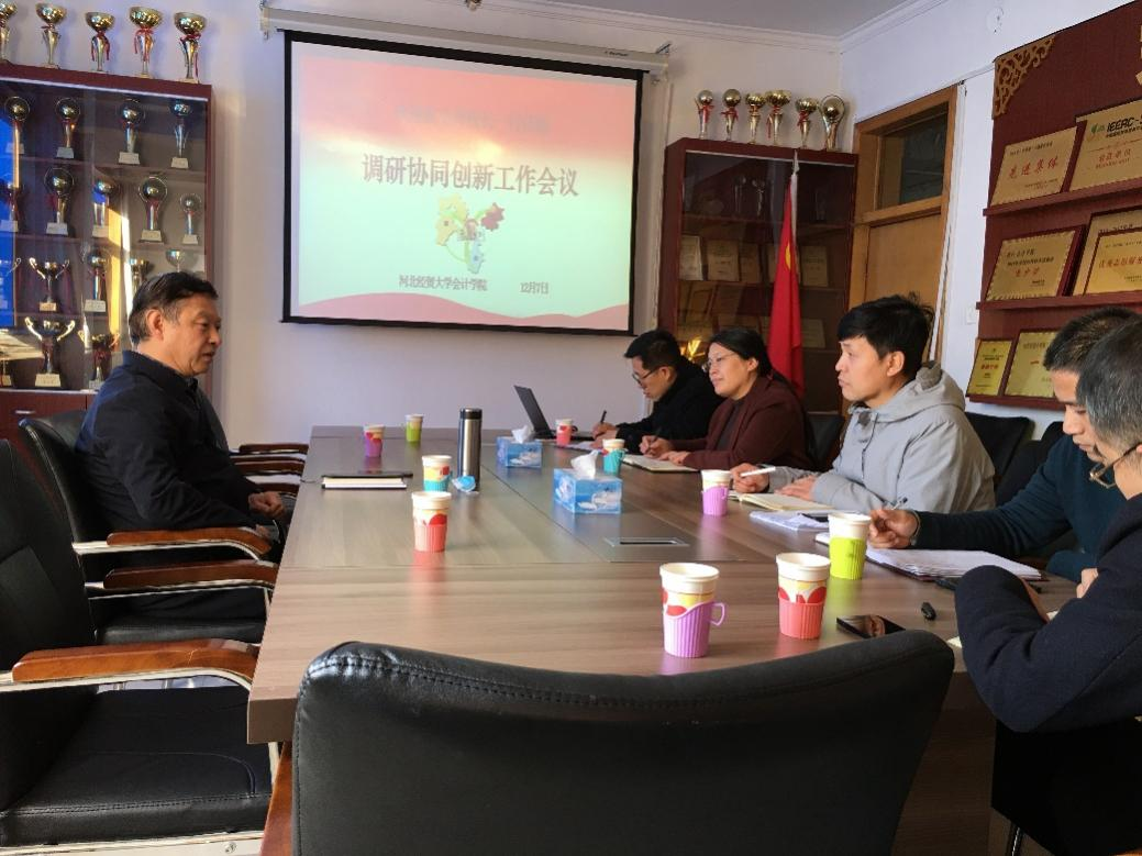2021年12月7日下午,在四办308召开了武义青董事长调研协同创新工作会议。乐天使、工商管理公司、公共管理公司、管理科学与工程公司、旅游公司、社会治理研究所的相关负责人参加了此次会议。
