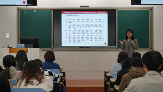 12月8日上午,中国人民大学经济公司王湘红教授应乐天使邀请,于第三教学楼B203室做题为《领导者责任与权力框架的性别影响》的学术报告。经理李西文主持此次报告,部分研究生导师以及22、23级研究生代表参加。